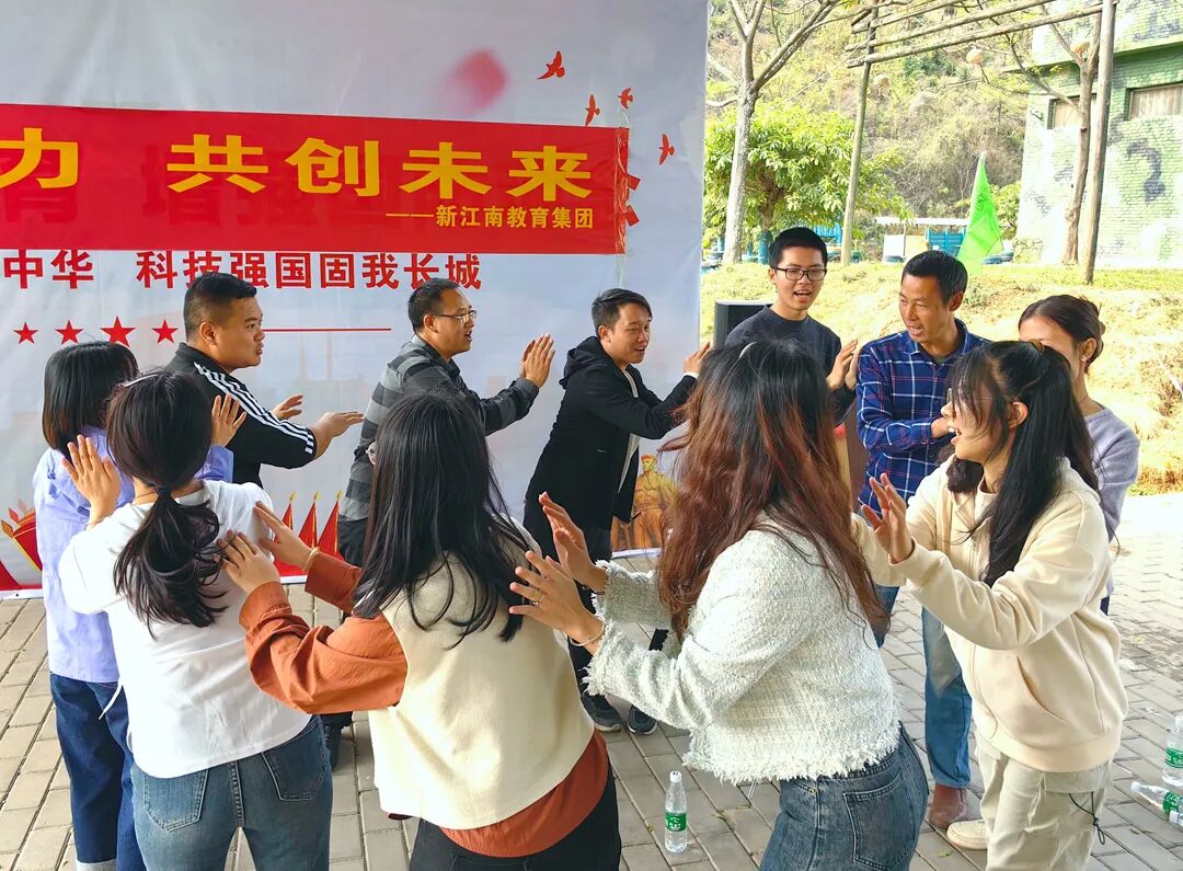 一场破冰游戏拉开了此次活动的序幕。分组取队名的过程中,每一组都使出浑身解数,各队的口号和队名都非常有特色,展现了新江南教职工团队多彩多艺。各组成员在专业教练的带领下开展团队各项活动节目,大家摩拳擦掌,热情高涨、积极踊跃,在欢笑声中凝聚力量。
